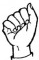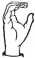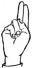 На ћирилици написано САНДРА БИБЕР састоји се из 11 слова [?]. Исписано ћириличном једноручном азбуком за глувонеме: